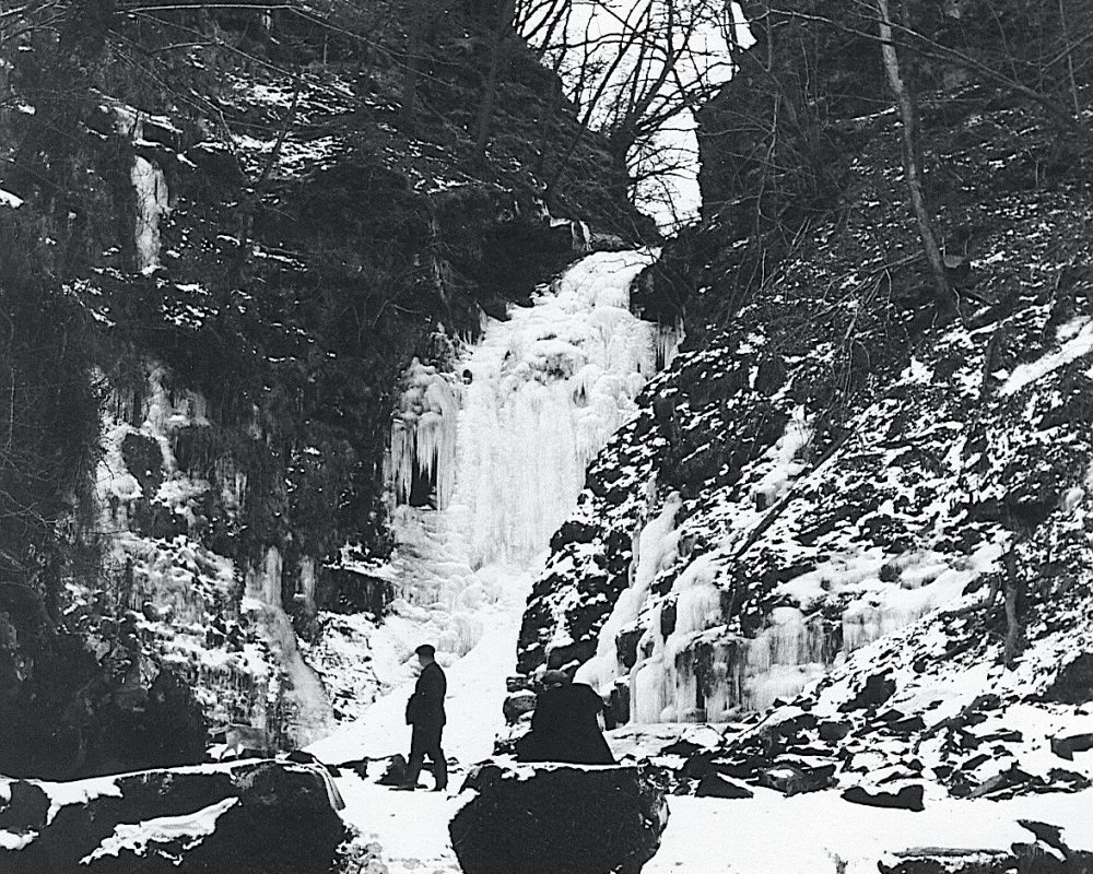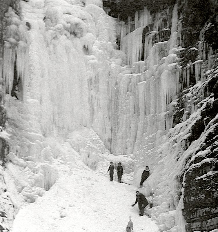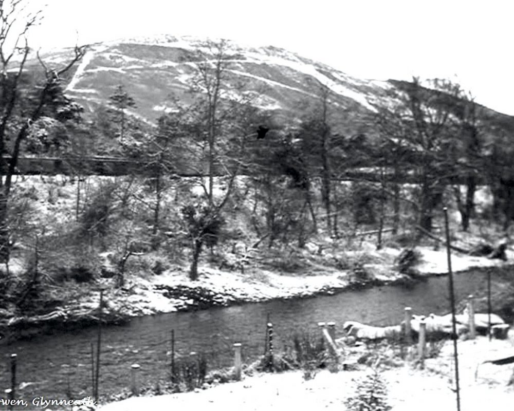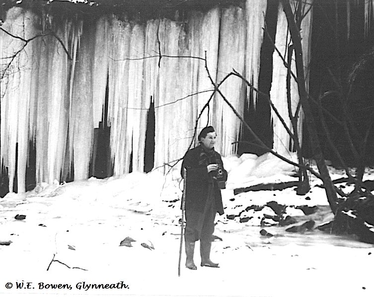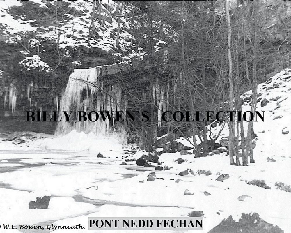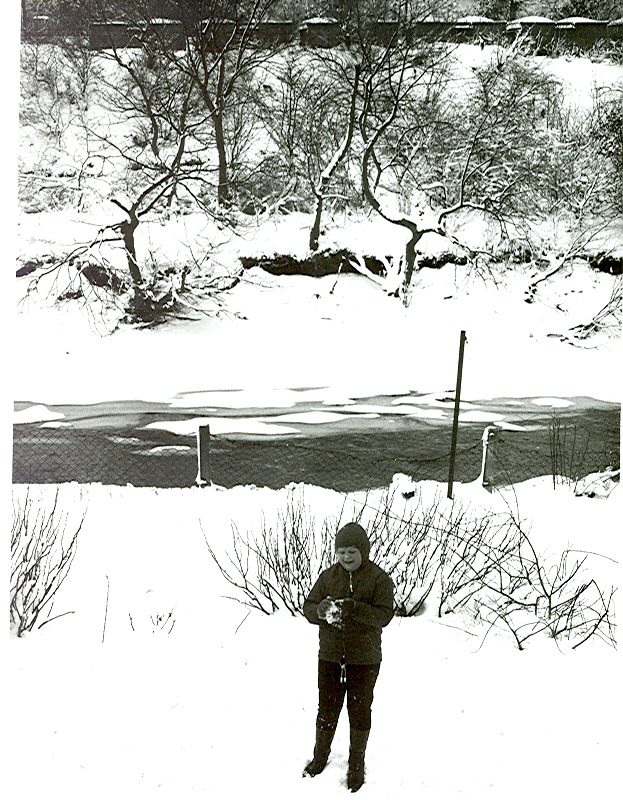 The big photo shows the river Neath completely frozen over, I am in the foreground of the photo on my knees, down by the river bridge you can see a number of people on the ice.