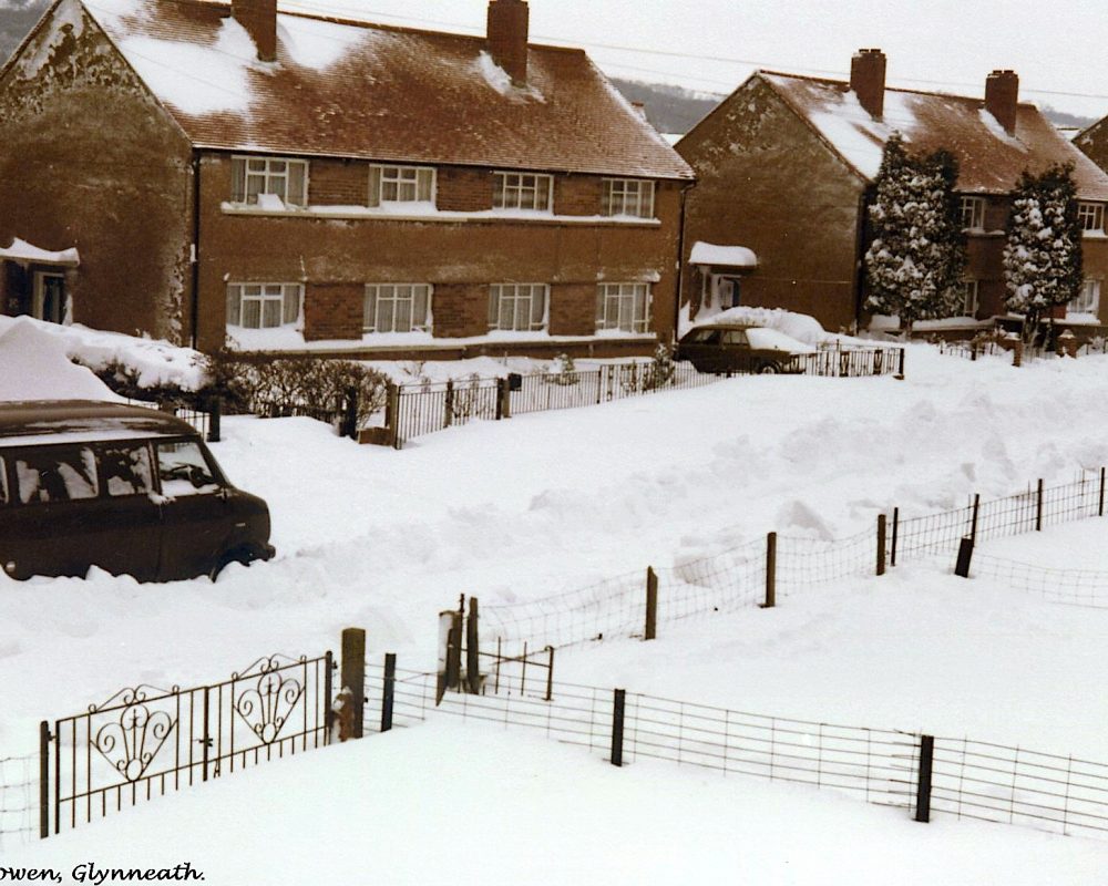 As usual the community spirit came to the fore, with everyone starting to pull together to help each other out. My father and I started walking up to Glynneath to get milk and bread and on the way we had to help a lady in Godfrey Avenue to get the snow out of her attic. Due to the fine nature of the snow it had blown in under the eaves and formed a small snow drift in the attic. If we had left the snow to melt it would have probably brought the ceiling down.